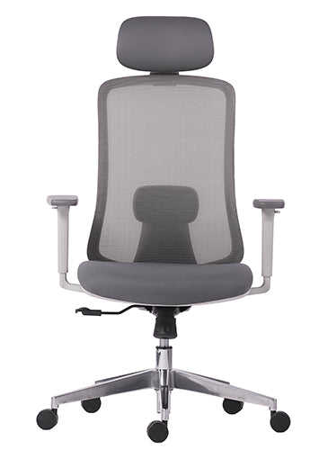 tapiz: respaldo de malla de color gris y asiento tapizado en tela color gris.