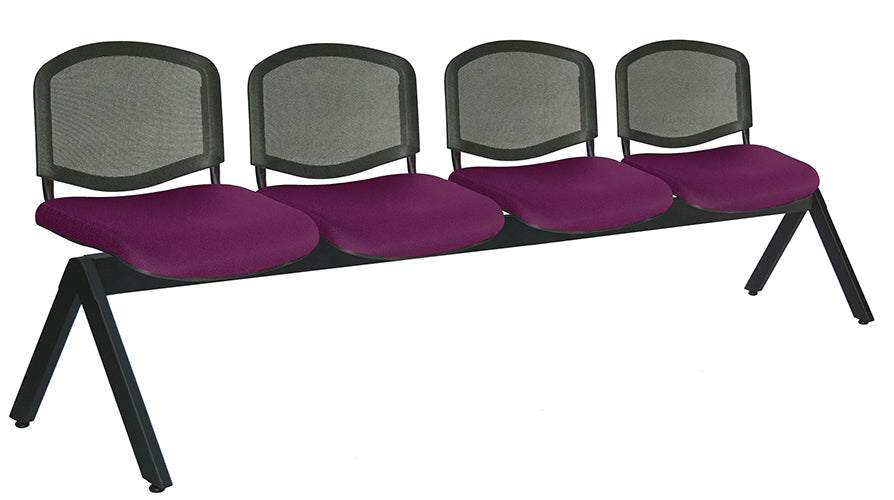 estructura: de acero tubular rectangular de 1 1/2" X 3", calibre 16, asientos y respaldos de perfil redondo tubular de acero ponchado con travesaños separadores tubulares redondos de acero con acabado de pintura epóxica (electrostática) color negro mate.