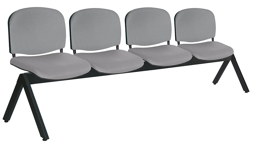 estructura: de acero tubular rectangular de 1 1/2" X 3", calibre 16, asientos y respaldos de perfil redondo tubular de acero ponchado con travesaños separadores tubulares redondos de acero con acabado de pintura epóxica (electrostática) color negro mate.