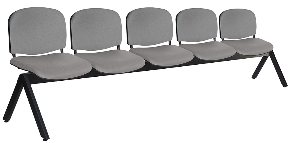 estructura: de acero tubular rectangular de 1 1/2" X 3", calibre 16, asientos y respaldos de perfil redondo tubular de acero ponchado con travesaños separadores tubulares redondos de acero con acabado de pintura epóxica (electrostática) color negro mate.