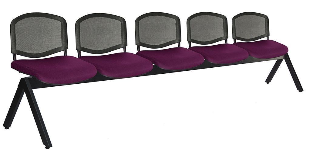 estructura: de acero tubular rectangular de 1 1/2" X 3", calibre 16, asientos y respaldos de perfil redondo tubular de acero ponchado con travesaños separadores tubulares redondos de acero con acabado de pintura epóxica (electrostática) color negro mate.