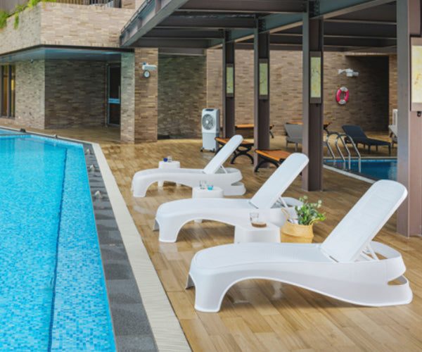 patas, asiento y respaldo: terminado en imitación mimbre de una sola pieza en polipropileno de alta resistencia y duración para intemperie, resistente a los rayos ultravioleta (UV) y al ambiente salino.