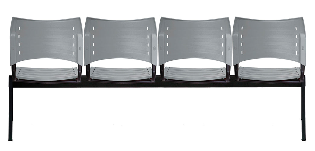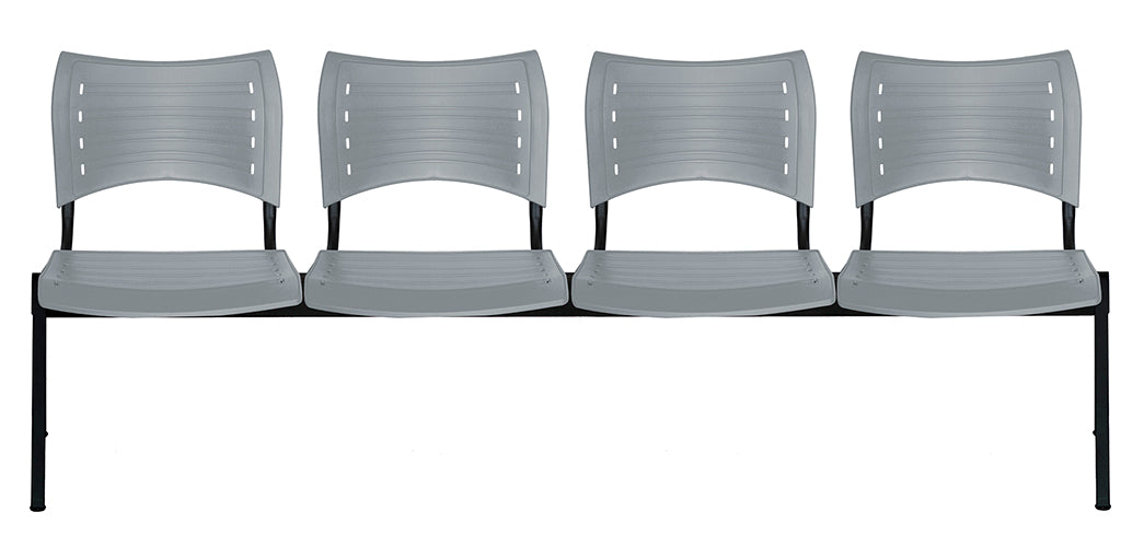 estructura: de acero tubular rectangular de 1 1/2" X 3", calibre 16, asientos y respaldos de perfil redondo tubular ponchado de acero con travesaños separadores tubulares redondos de acero con acabado de pintura epóxica (electrostática) color negro.